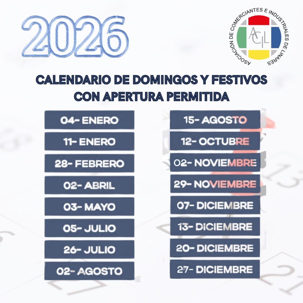 Orden por la que se establece el calendario de domingos y festivos 2026 en Linares